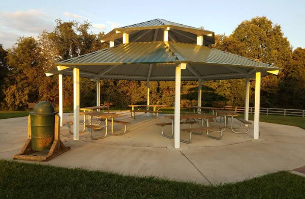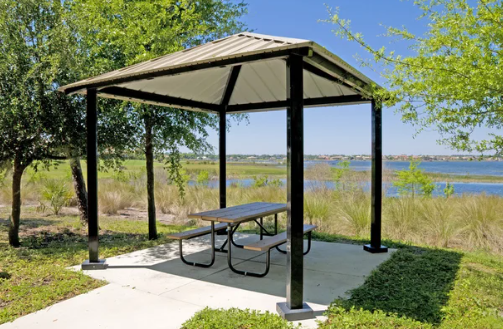 - Pavilions offer full protection from sun and rain for year-round use